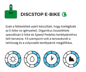 Ezek a fékbetétek azért készültek, hogy kielégítsék az E-bike-os igényeket. Organikus összetétele speciálisan E-bike és Speed Pedelec kerékpárokhoz lett tervezve. Fő szempont volt a tervezésnél a tartósság és a súlyosabb kerékpárok megállítása.